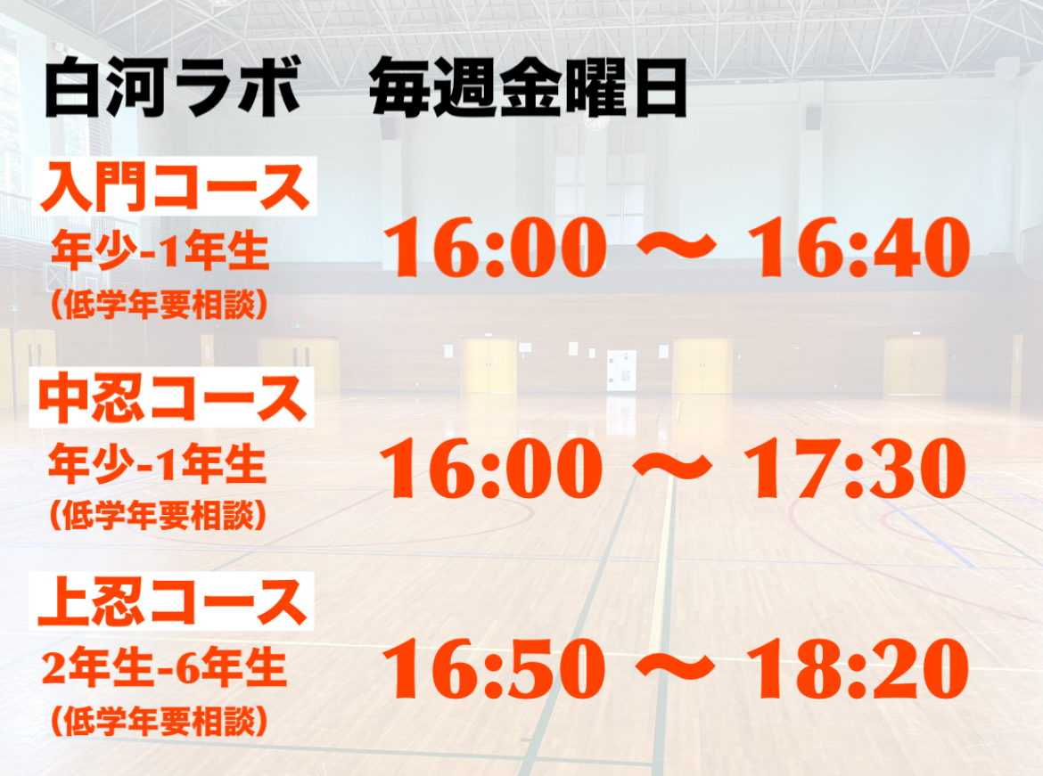 上忍コース | 小学2~6年生 | 16:50~18:20 | 〇 |
