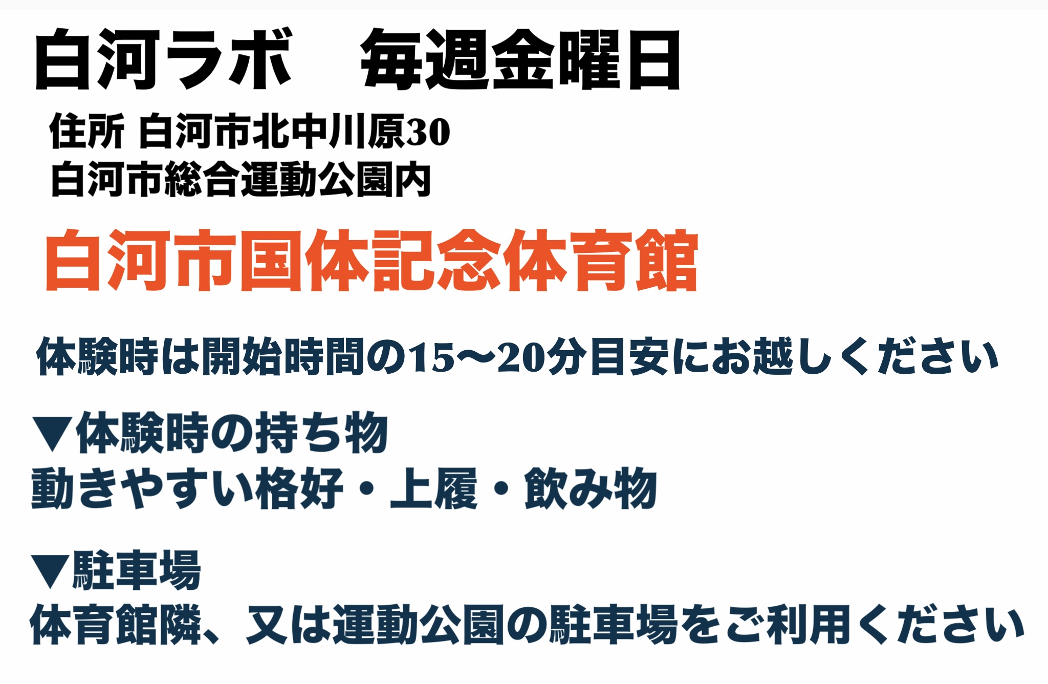 〒961-0054 福島県白河市北中川原314 白河市国体記念体育館 マップを表示 ![]() ![]() |