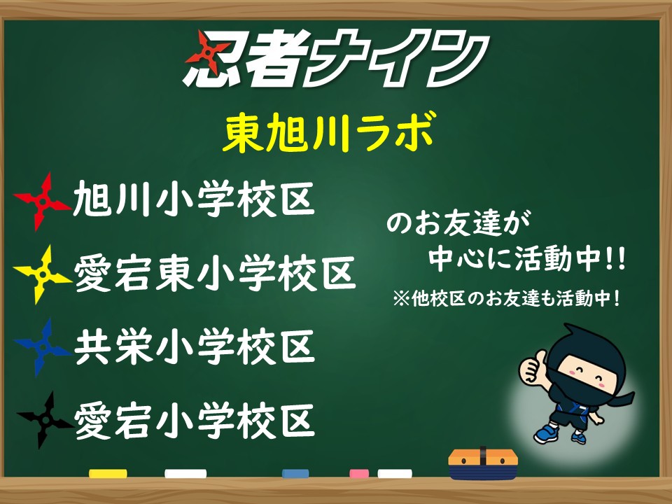 旭川小学校区・愛宕東小学校区・共栄小学校区・愛宕小学校区のお友達が中心に活動中!※他校区のお友達も活動中!