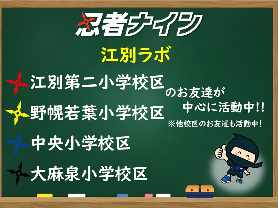 江別第二小学校区・野幌若葉小学校区・中央小学校区・大麻泉小学校区のお友達が中心に活動中!※他校区のお友達も活動中!