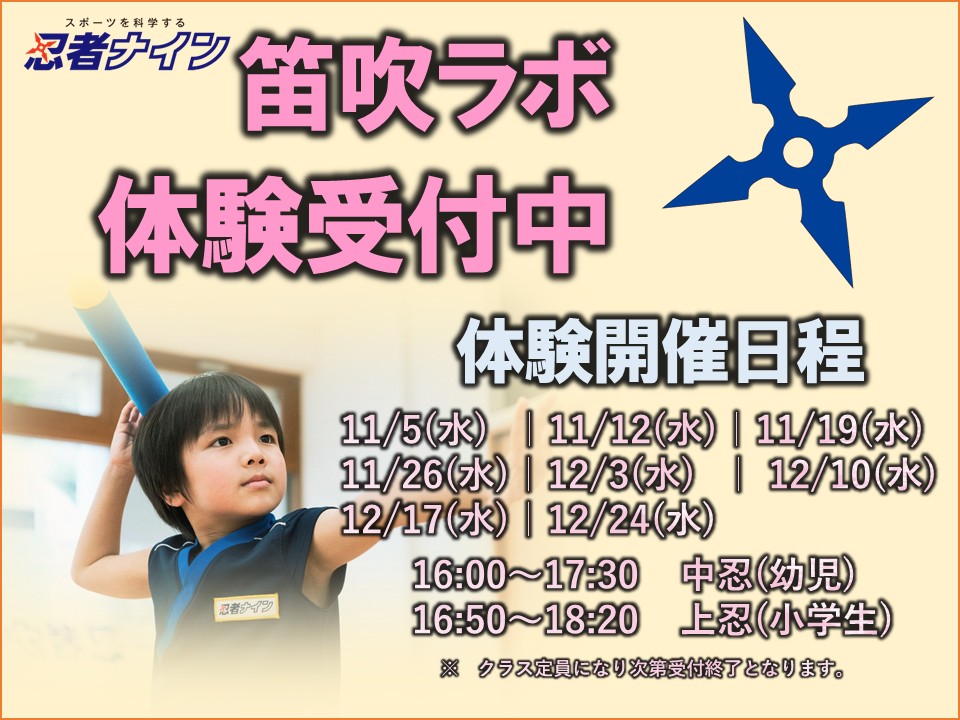 毎週水曜日 16:00~18:20 【中忍】年 中・年 長|16:00~17:30 【上忍】小学1~6年生|16:50~18:20 |