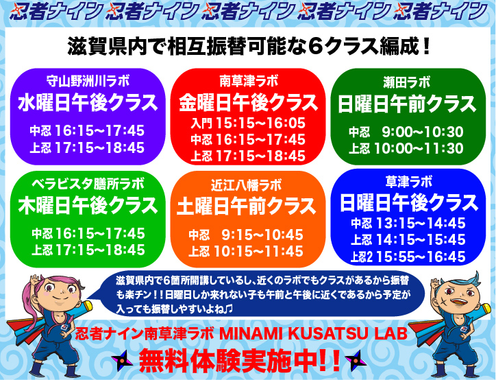 ぜひこの機会に忍者ナイン南草津ラボへ!