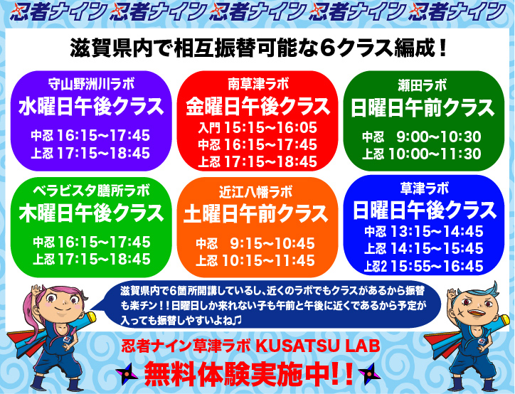ぜひこの機会に忍者ナイン草津ラボへ!