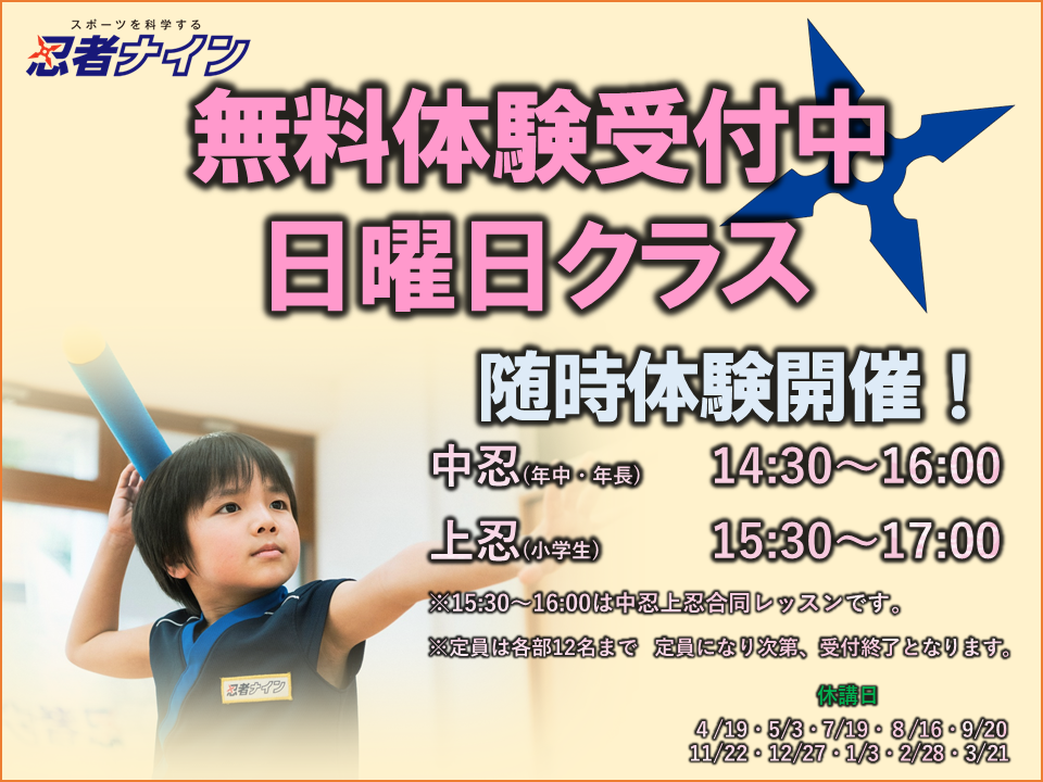 | 日曜日 | 中忍コース | 年中・年長 (他学年要相談) |