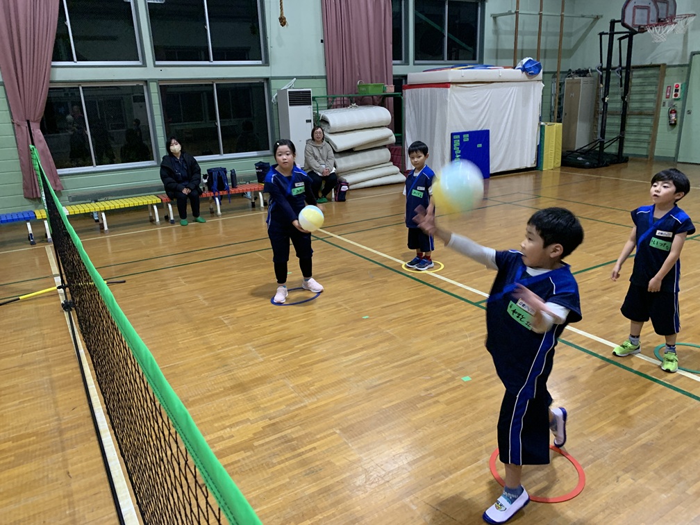 チームに分かれて、風船ゲーム!バレーボールの動きの練習風景です!