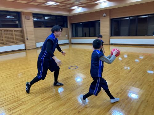 上忍さんでは、バスケットボールのフェイントの練習をしました。