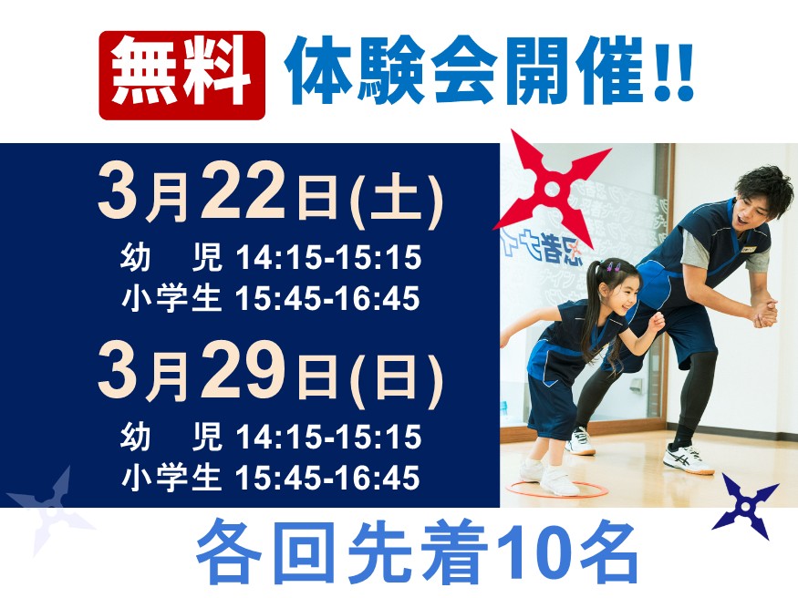 | 日 | 上忍コース | 小学生1~6年生 | 15:10~16:40 | 〇 |