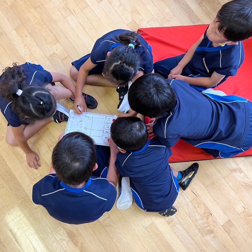 どうしたら勝てるか?忍者バトルでは真剣に作戦会議!社会性やコミュニケーション力を高めることができます。